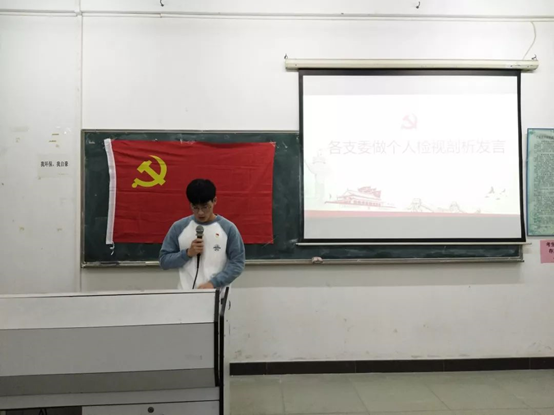 大会第三项议程党支部书记做支部工作对照检视和自我检视。学生党支部书记谢朋涛同志做支部工作对照检视总结和个人自我检视,支部其他党员逐一对其检视进行了批评,谢朋涛同志进行了回应。支部党员一致肯定了支部所做的工作,但普遍认为支部开展的活动缺乏创新性,不能调动党员参与的积极性。支部书记工作中创新意识不足,缺少密切联系群众等问题。针对各位党员提出的批评和建议,谢朋涛同志悉心听取了各位党员意见,并表示将认真整改,不断提升。