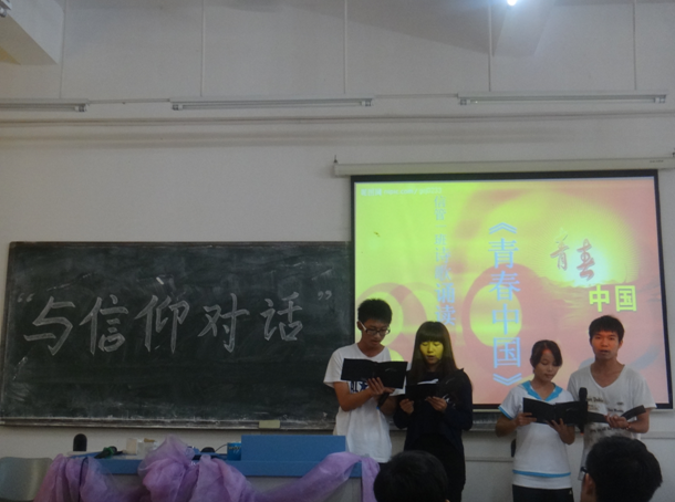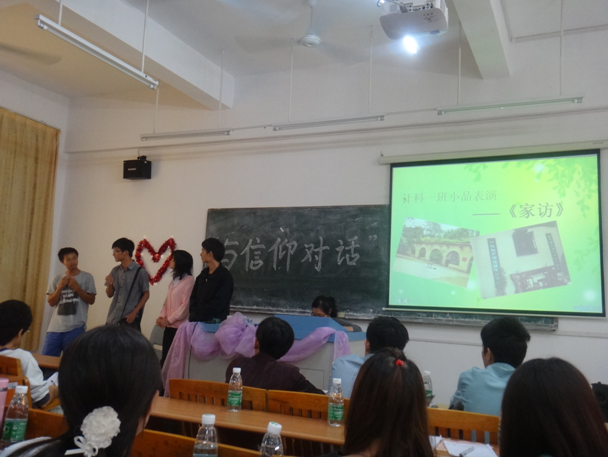 1030号下午,我系10月份团日活动与信仰对话情景剧活动在励志楼D202举办。出席本次活动的嘉宾有我系团总支书记、学生会指导老师王忍老师,以及院团委陪审团和各系团总支副书记。此次活动有情景剧表演、大合唱、诗歌朗诵等节目,其中不乏精彩情节。