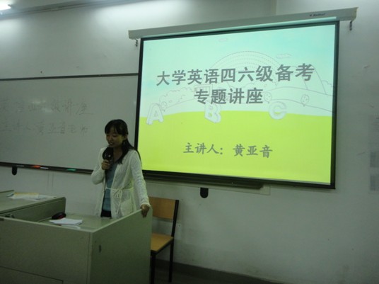 热点新闻 当前位置: 首页 >> 学生工作 >> 正文 我系主办大学英语四六级备考专题讲座 2014-11-19 我系主办大学英语四六级备考专题讲座 2012年11月12日晚,我系很荣幸地邀请到了我院外语系的黄亚音老师在创新楼E201为我系学生进行四六级考试备考的指导。 首先,黄老师强调了学习英语的重要性。 接着,黄老师与同学们分享了她学习英语的独特方法并重点分析了英语四六级的考试题型,及做题时需要注意的事项。 最后,黄老师预祝我系学生在12月份的四六级考试中取得好成绩。 此次讲座为我系学生的四六级考试提供了备考方法,明确了备考重点,增添了自信心。 上一条:我系举办大学毕业生走进职场前专题培训讲座 下一条:我系成功举办“软考”及就业方向讲座 【关闭】