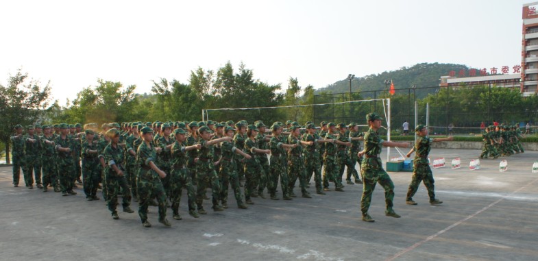 2011914,学院2011届新生军训在庄严的军歌中拉开了帷幕,早上8点整,军训动员大会正式开始,我系177名新生穿着整齐,精神抖擞地参加了本次大会,会上由学院集团董事长廖榕就先生、学院院长陈玉川、军训团团李雄飞先后致辞,对2011军训作出了期望和要求。之后,由教官代表为全院学生做军体拳表演,期间,全场掌声不断。