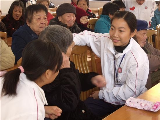 8:45到达敬老院,之后,各志愿者按原计划到宿舍与老人们聊天谈心,在分享老人们对生活的理解的同时,给老人们讲述生活中的趣事。9:30志愿者们邀请老人们前往演艺厅观看由志愿者精心准备的各项文艺表演。其中,有歌曲表演、舞蹈表演、书法表演、太极拳表演等。同时为老人们送上志愿者们在准备阶段精心制作的小礼品。表演期间,各志愿者详细的为老人们讲解表演的内容,增加老人们对节目的理解。观看之余,老人们还积极参与到表演中去,有的与志愿者合唱经典老歌、有的与志愿者共演太极拳等等。文艺表演形式多样、内容丰富,为老人们单一、乏味的生活中增加了一点乐趣。11:20文艺表演结束,志愿者们有秩序的扶送老人们回到房间,并为老人们做一些简单的整理工作,如为老人们修剪指甲,梳理头发,擦拭手脚等,同时为老人们整理、打扫房间,为老人们营造一个干净、舒适的生活环境。最后,本次活动在欢乐中落下了帷幕。