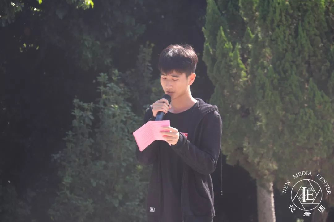紧接着,学生代表朱绍玮发言。朱绍玮同学主要从对革命先辈的崇敬与学习和新青年与民族振兴的使命担当来号召同学们,树立远大的人生志向和坚定的理想信念,脚踏实地,时刻牢记为人民服务的宗旨,