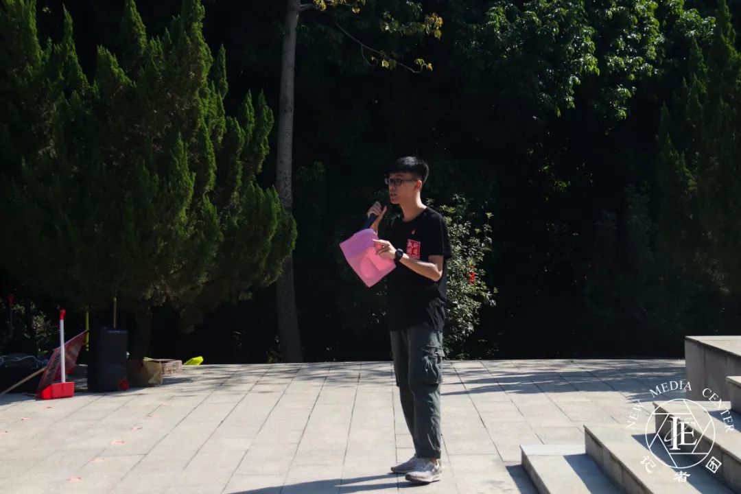接着是黄比悉老师致辞,他向同学们提出几点要求:一、青年学生要时刻牢记初心使命,勇于担当;二、青年学生要刻苦学习,提高专业素养;三、青年学生要积极学习革命先辈的无私奉献精神和伟大的爱国情操。