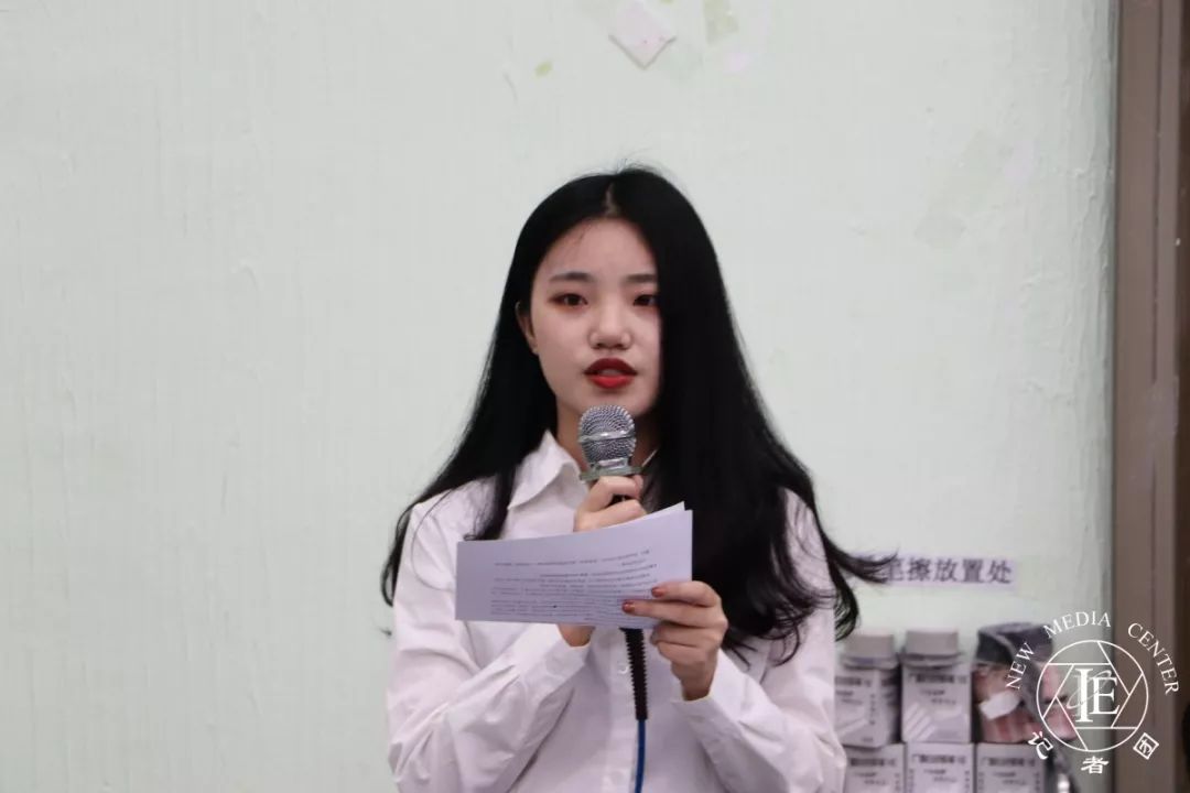 接着是2019级新生助理班主任代表刘菲菲发言。她表示助班是辅导员与新生之间的桥梁,是师弟师妹的引路人,更是一种责任。同时她很高兴能够和老师们一起见证19级新生的成长,能够在最好的年华遇到他们。她希望19级新生在接下来这段时光,能够主动参与各种各样的活动,不要让自己的青春留有遗憾。