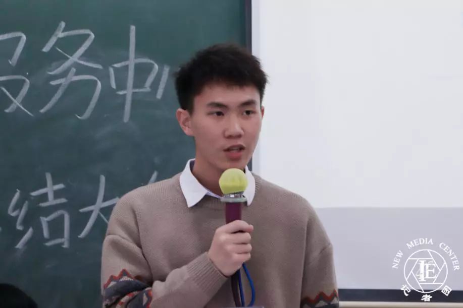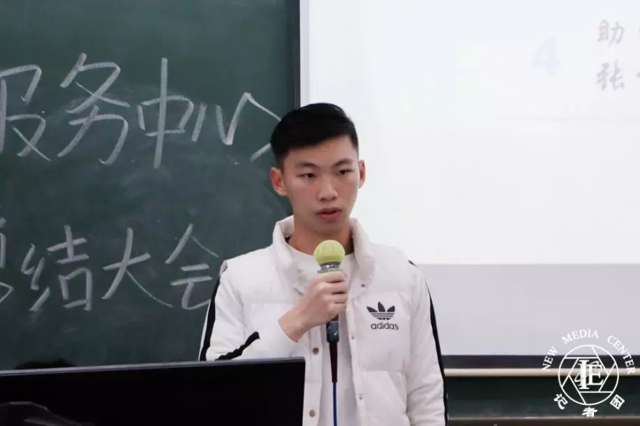 首先是助理张俊伟发言。张俊伟同学表示很高兴可以融入学生事务管理与服务中心这个大家庭。加入学生事务管理与服务中心后,自己所负责的工作,发现有进步,也有不足,并表示自己会以更加饱满的状态投入下学期的工作当中。希望在老师以及师兄师姐的带领下,可以更好地锻炼自己,学会更多技巧,为学生事务管理与服务中心更好地贡献自己的力量。
