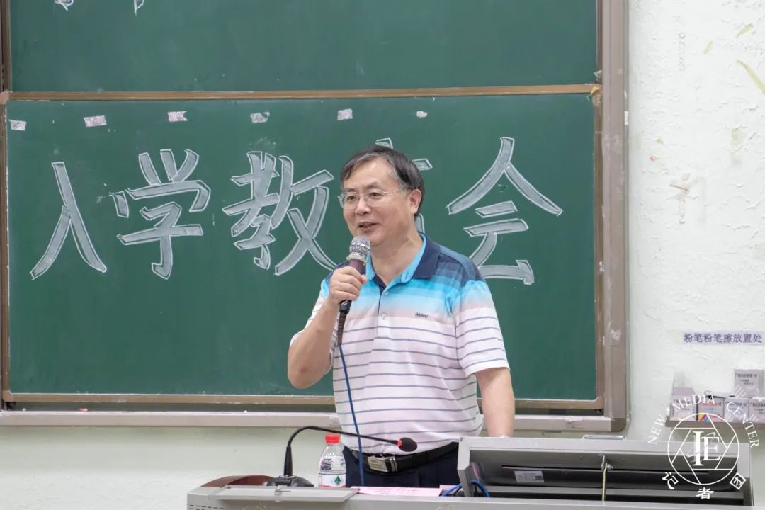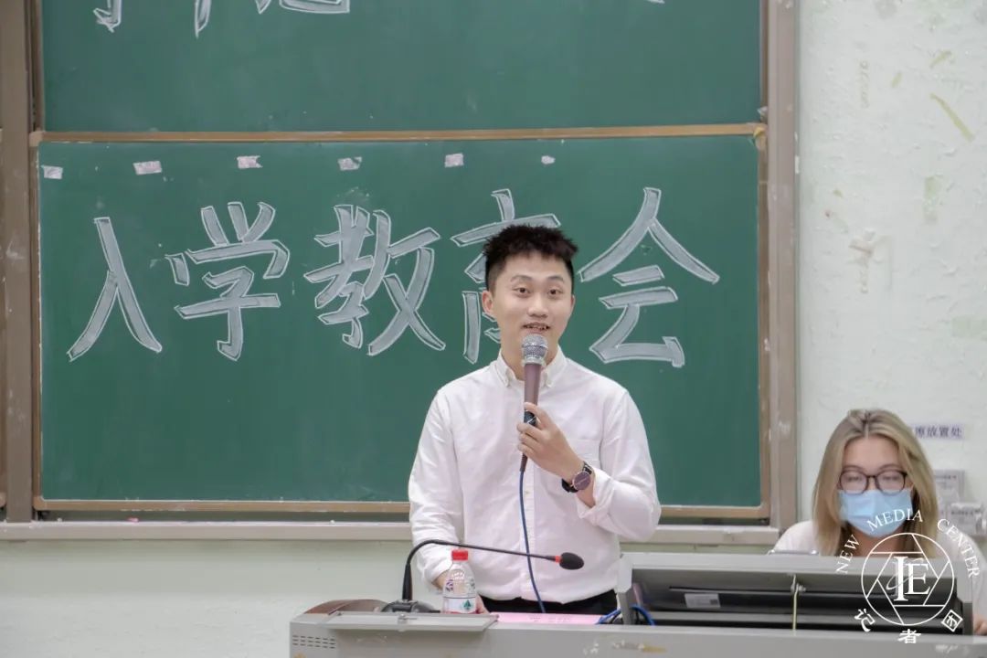 首先是黄比悉老师主持发言,他向新生们讲述了数据科学学院的概况。他主要介绍了数据科学学院的发展与师资力量,六个教研室以及行政教辅老师。