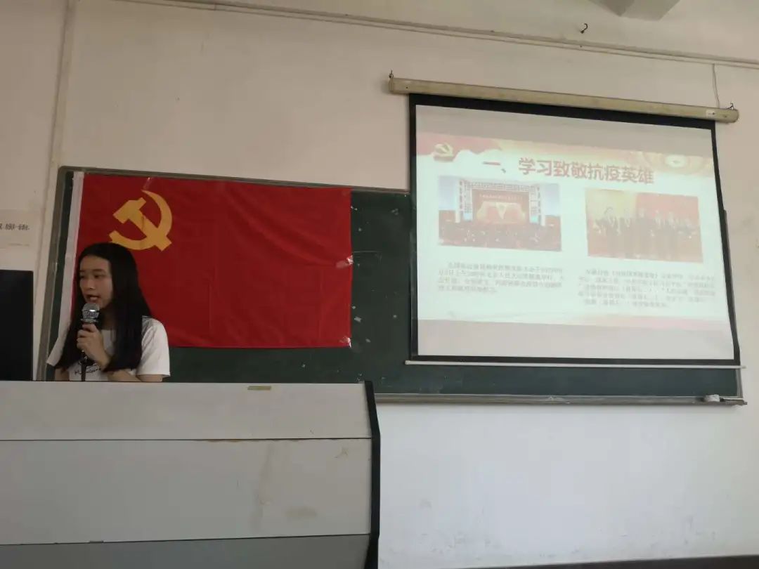 2020年10月10日,数据科学学院学生第二党支部在励志楼A304开展“学习致敬抗疫英雄,弘扬伟大抗疫精神”主题党日活动,学习在新冠肺炎抗疫斗争中英雄代表的先进事迹。大会由黄雅烁同志主持,学生第二党支部书记官志豪老师、党支部全体党员和发展对象参与了本次学习活动。