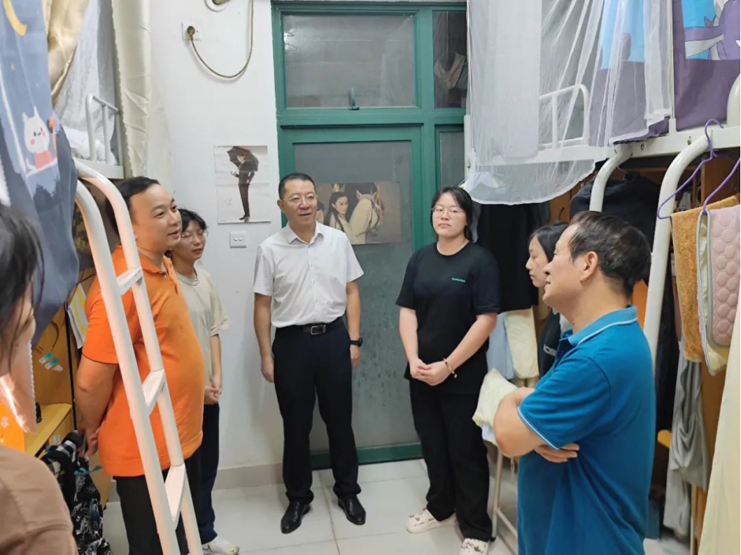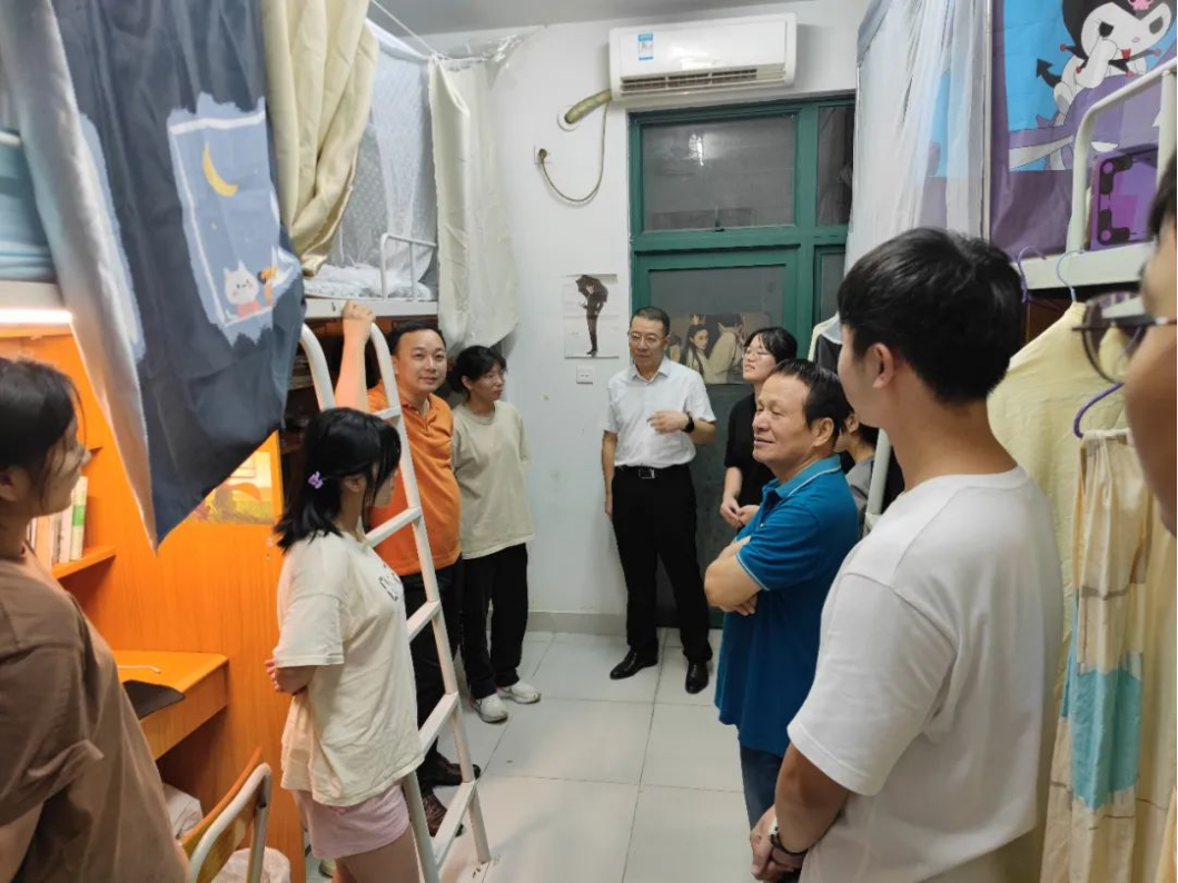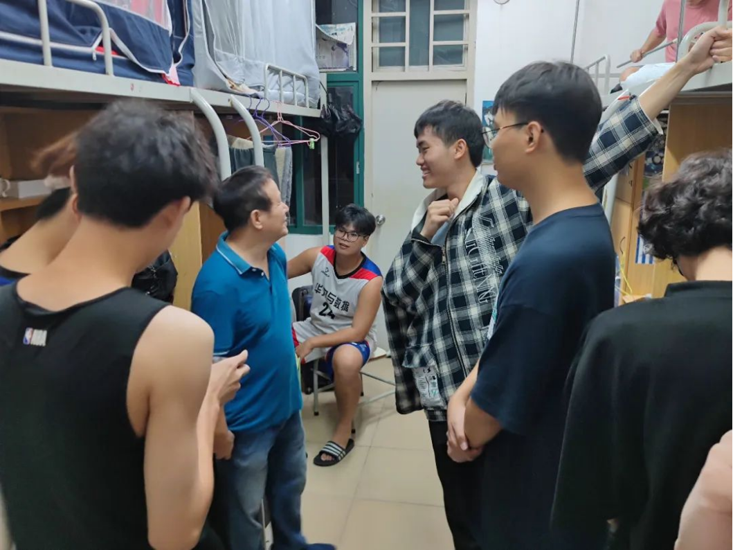 随后,学院领导一行来到西11栋男生宿舍,学院常务副院长赖庆副教授与学生亲切交谈,询问学生是否存在困难或疑惑。他鼓励同学们珍惜学校资源,把握青春时光,努力学习,积极进取,成为对社会、对国家有贡献的有用之才。