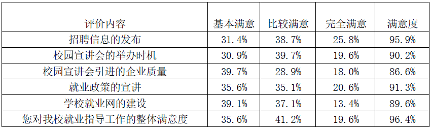 为建立毕业生就业对人才培养的反馈机制,我校从2010 年起每年开展毕业生就业满意度调查,采取问卷调查为主,谈话走访为辅的方式,对毕业生及其用人单位进行调查,形成毕业生就业情况分析报告。2012年起开始增加开展就业指导工作满意度调查工作,形成毕业生对就业指导满意度分析报告。这些报告为我校的专业设置、教育教学改革、人才培养提供了有价值的信息,为学校在招生计划安排、专业设置、学科调整、教育教学改革、人才培养等方面提供参考依据。