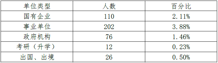 目前,我校毕业生的就业主要集中在中小型企业,到政府机构、事业单位、国有企业就业的比例不高。我校将进一步优化人才培养模式,提高毕业生的综合素质,在保持高就业率的基础上,努力提升毕业生的就业层次。