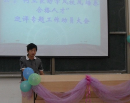 热点新闻 当前位置: 首页 >> 正文 信息工程系召开迎评动员大会 2014-11-19 信息工程系召开迎评动员大会 2011年11月8日,我系在励志楼A408召开了以“树立良好学风校风,培养合格人才”为主题的迎评动员大会。与会领导有:信息工程系主任骆耀祖,学工助理吴泽佳老师,辅导员蒋云丽老师。学生代表共214人。 会上,骆耀祖主任发表的重要讲话让我系学生充分认识到此次迎评工作对我院的重要性,他强调我们要为评估做贡献。 之后,吴泽佳老师宣读了《学士学位授权评审知识手册》(学生分册)中的相关知识,要求我系学生充分做好迎评准备。 最后,学生代表吴树龙发表演讲并做宣誓。 上一条:信息工程系评估工作小结 下一条:信息工程系团总支开展图书馆志愿服务活动 【关闭】