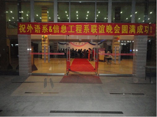 20101123晚,由信息工程系与外语系联袂举办的青春联起来联谊晚会在我校中央图书馆大厅圆满落下帷幕。广东商学院华商学院信息工程系骆耀祖主任,信息工程系辅导员吴泽佳老师,外语系中山祥老师、常莹老师,潘旭老师及各位老师和全体信息工程系、外语系大一学生等观看了本次晚会。