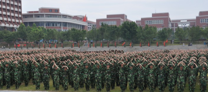 2011年9月14日,学院2011届新生军训在庄严的军歌中拉开了帷幕,早上8点整,军训动员大会正式开始,我系177名新生穿着整齐,精神抖擞地参加了本次大会,会上由学院集团董事长廖榕就先生、学院院长陈玉川、军训团团长李雄飞先后致辞,对2011军训作出了期望和要求。之后,由教官代表为全院学生做军体拳表演,期间,全场掌声不断。