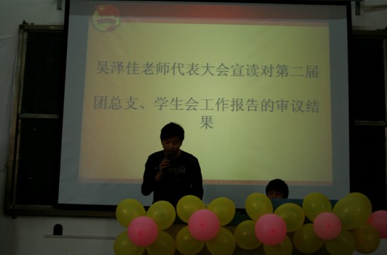 然后,由信息工程系团委书记吴泽佳对第二届团总支学生会工作报告进行审批。