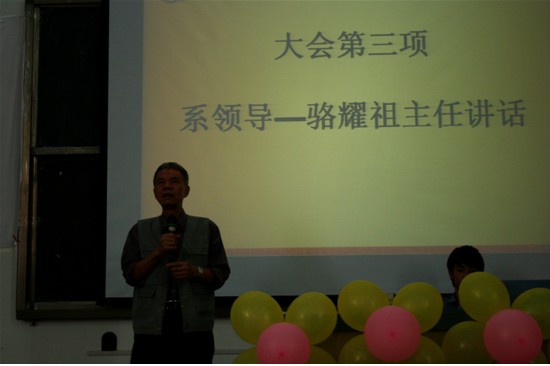 然后,信息工程系主任骆耀祖做了精彩的讲话,他对信息工程系团总支和学生会过去一学年的工作给予了高度的评价,并对即将当选的干部提出了明确的指导思想,他要求全体干部要紧紧围绕学院和全系的中心努力开展工作。特别是近阶段学院正处于评估最后阶段,各级干部都要发挥好模范带头作用,以饱满的热情和良好的状态迎接评估专家组的到来