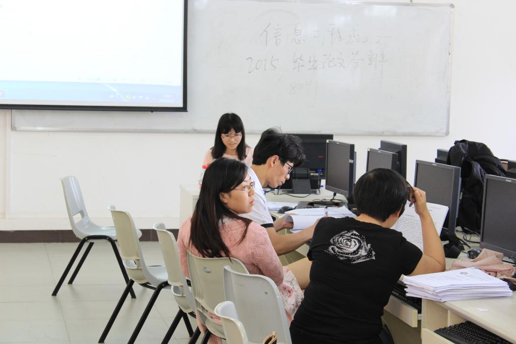2015年5月12日下午2时,我系2015届毕业论文答辩同时分别在厚德楼分六个答辩组在实验室进行。