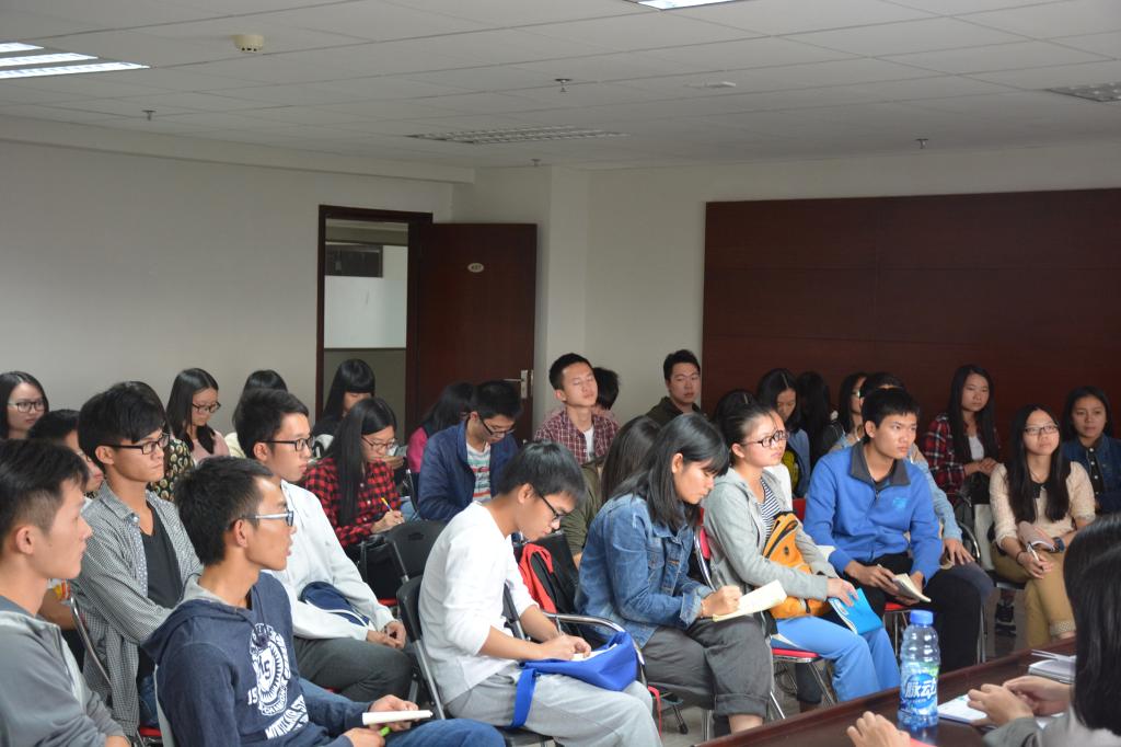 学生座谈会开始前,蒋大锐老师发表讲话,他表示,召开此次座谈会是为了更好的促进老师与学生的交流,借此机会,老师们希望更深入的了解同学们的学习、生活、工作等情况,通过学生代表们反馈的学习生活问题,大家一起共同克服不足,汲取教训。