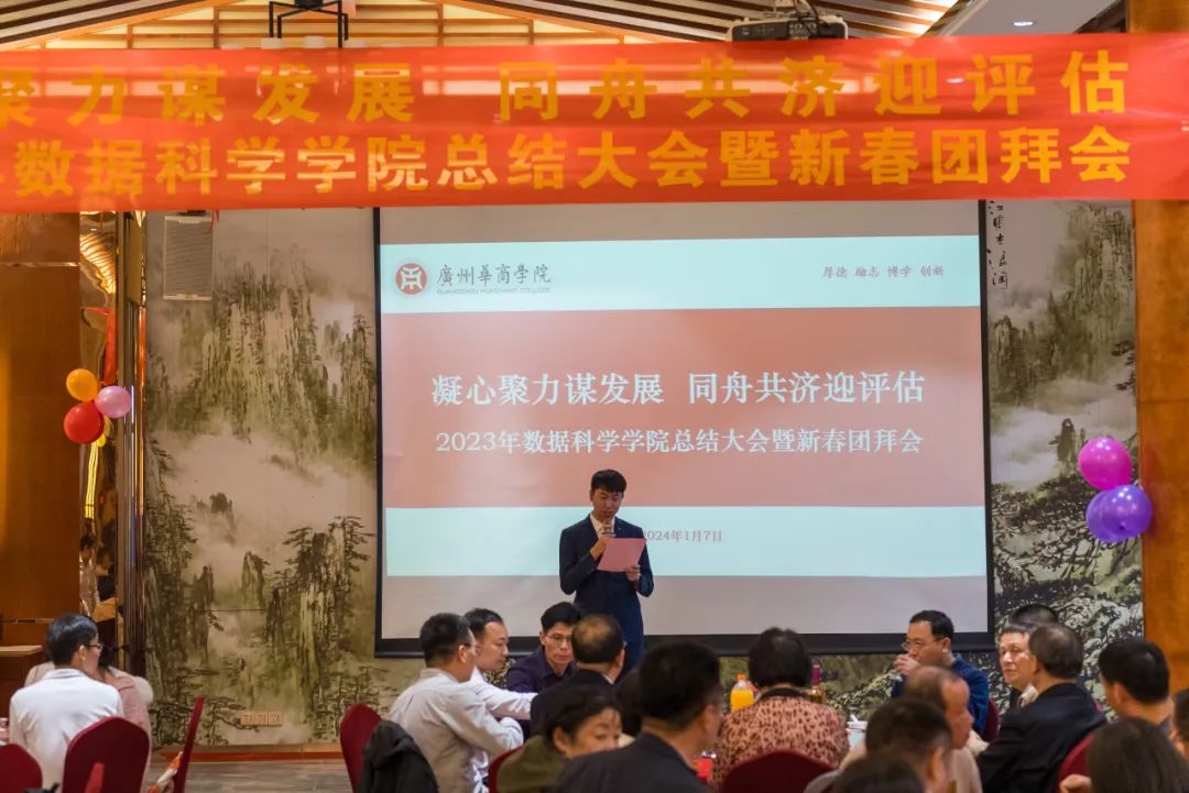 冬至阳生,岁回律转。2024年1月7日,广州华商学院数据科学学院举行2023年总结大会暨新春团拜会,学院全体教职工参加活动。广州华商学院支戈壁副校长、吕峻闽副校长、原副校长韩兆洲教授莅临现场,会议由数据科学学院谢嘉希主持。