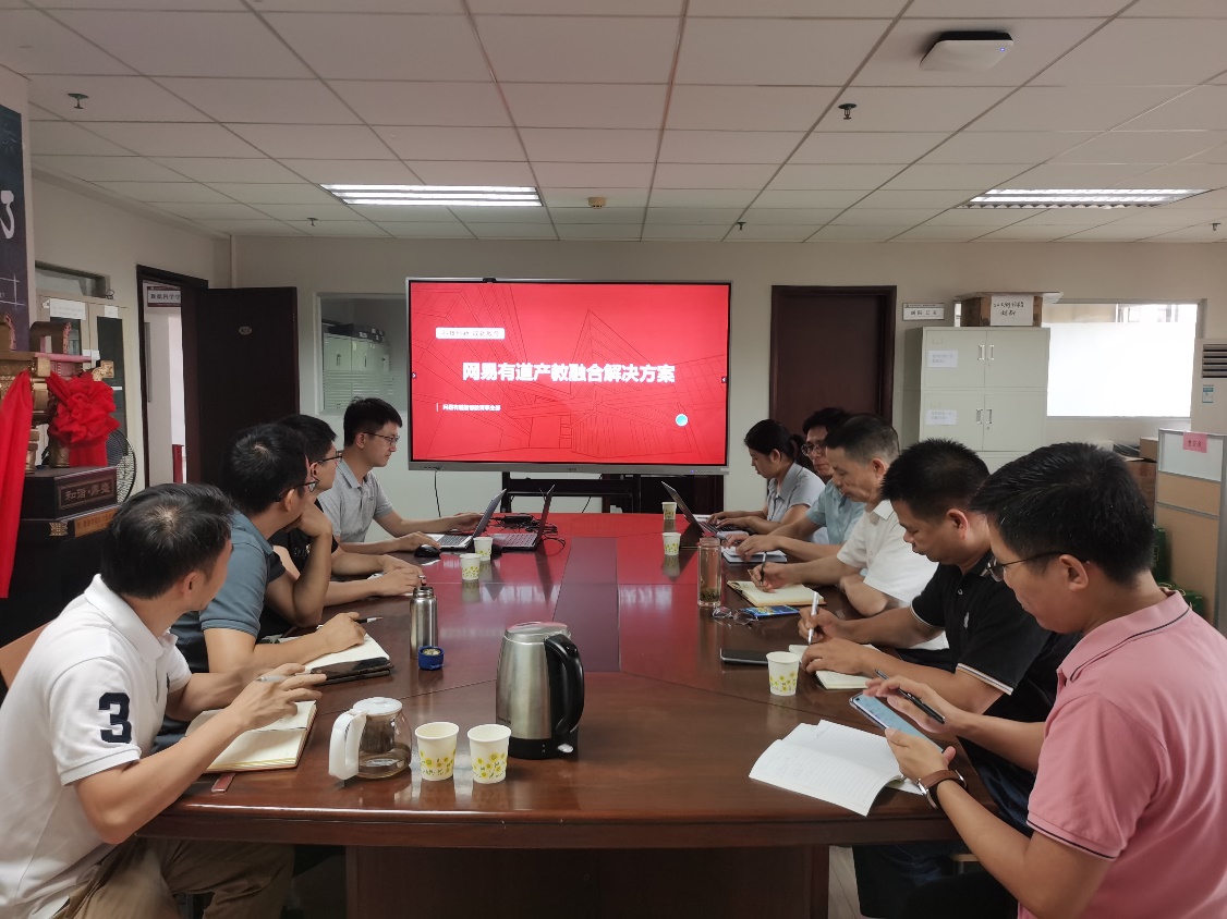 会议由人工智能学院产教融合副院长杨波副教授主持。出席会议的人员包括人工智能学院院长戴经国教授、副院长叶仕通副教授、人工智能系副主任洪绍勇副教授、数字媒体技术专业马焕坚老师;网易有道公司解决方案总监刘尹、王伟邦;华为政企广州市教育经理罗泽建、华为企业培训与认证部广东院校业务经理梅宇;以及华为生态公司中软国际的吴楚杰、旷正中、黎煌剑。