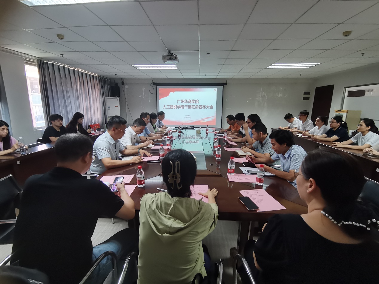 广州华商学院人工智能学院于7月9日下午5点在行政楼512会议室举行干部任命宣布大会,宣布陈洋广同志担任人工智能学院副院长。广州华商学院副校长吕峻闽、学校办公室常务副主任蒋大锐、人事处副处长杨俏文;人工智能学院院长戴经国、副院长杨波、院长助理洪绍勇、杨本胜、学院行政教辅及各系正副主任共同出席。会议由人事处副处长杨俏文主持。