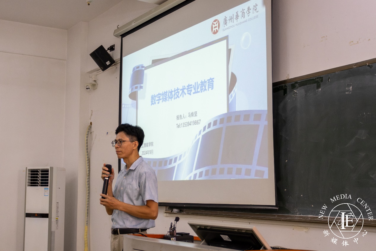 数字媒体技术系主任马焕坚老师首先分析了数字媒体技术行业的现状和发展趋势。随后,他详细介绍了本专业的培养目标和方向,该专业旨在培养掌握数字媒体相关理论和技能的复合型人才,学生毕业后可以从事计算机动画、游戏软件、虚拟现实系统等领域的技术研发和管理工作,专业方向包括三维动画、交互媒体和虚拟现实等。马老师还介绍了数字媒体技术专业的核心课程,并强调该专业注重实践和创新的教学特色。此外,马老师鼓励学生积极考取相关证书,提升自身竞争力,并积极参加各类竞赛,如中国大学生设计大赛、创新创业大赛等,展示才华,积累经验。最后,马老师对新生提出了殷切期望,希望他们勤奋学习、勇于探索、团结协作,努力成为优秀的数字媒体技术人才。