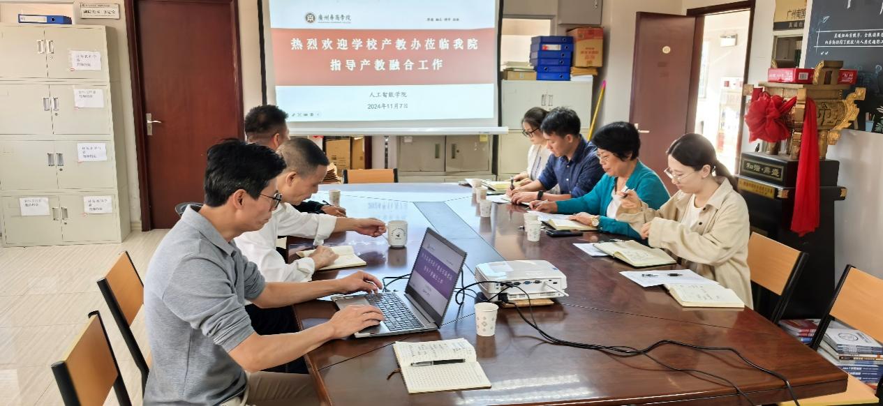 为贯彻落实国家产教融合、校企合作、协同育人的战略,迎接学校即将举办的产教融合“嘉年华”活动,人工智能学院于11月7日下午在行政楼411会议室召开了产教融合调研访谈会。广州华商学院产教融合办公室主任唐明琴、副主任唐显锋,财务处吴世海一行莅临学院指导工作,人工智能学院院长戴经国,副院长叶仕通、杨波,产教融合专员徐胜超参加会议。会议由人工智能学院副院长杨波主持。