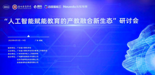 在人工智能浪潮席卷全球的背景下,一场关乎高等教育基因重构的变革正在岭南大地悄然发生。2025年6月13日,由广东省计算机学会民办教育工作委员会主办、广州华商学院人工智能学院承办的“人工智能赋能教育的产教融合新生态”研讨会,在广州盛大启幕。来自全省近40所民办院校的院长、学科带头人、骨干教师,与百度、华为(中软国际)、东软教育、腾科网络等科技巨头代表共聚一堂,通过政策解码、前沿报告、深度研讨与实体签约,绘制出AI时代高等教育高质量发展的“广东路径”。广东省政协委员,广东省高等教育学会常务副会长、韶关学院原校长廖益教授、广东省计算机学会理事长韩国强教授、广东省计算机学会民办教育工作委员会主任委员蒋盛益教授、中山大学人工智能学院副院长印鉴教授、华南师范大学计算机学院院长蒋运承教授及我校党委书记陈玉欢教授、党委副书记、纪委书记、副校长吕峻闽教授、副校长许娜等校领导莅临研讨会现场。