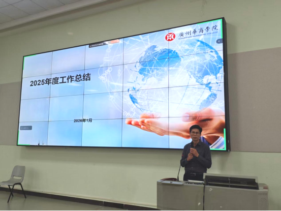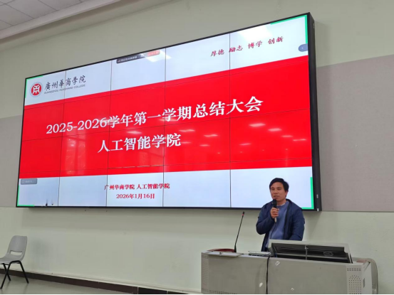 2026年1月16日下午,广州华商学院人工智能学院在励志楼B207召开2025-2026学年第一学期期末总结大会。会议由戴经国院长主持,学院领导班子及全体教职工参加会议。