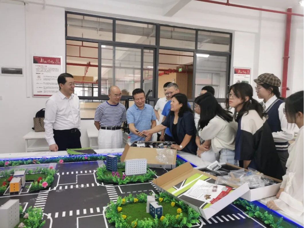 启动仪式结束后,与会领导嘉宾和师生们兴致盎然地参观7号楼505——“引航人工智能计划”实验室。值得关注的是,该实验室为在校生提供了一个宝贵的机会:他们都可以申请参与线上线下的公益培训课程,通过掌握一定的Python编程技术,完成智能小车轨迹规划项目后,即可获取相关能力证书。校企双方领导还对深度开展产教融合工作进行深入探讨交流。