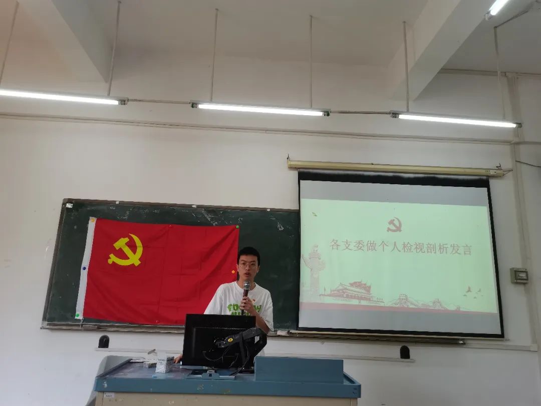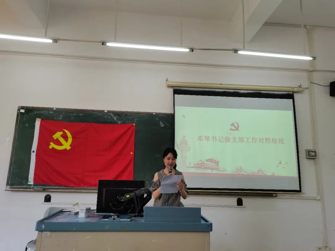 数据科学学院学生第二党支部书记邓琴同志做支部工作对照检视总结和个人自我检视,支部其他党员逐一对其检视进行了批评,邓琴同志进行了回应。