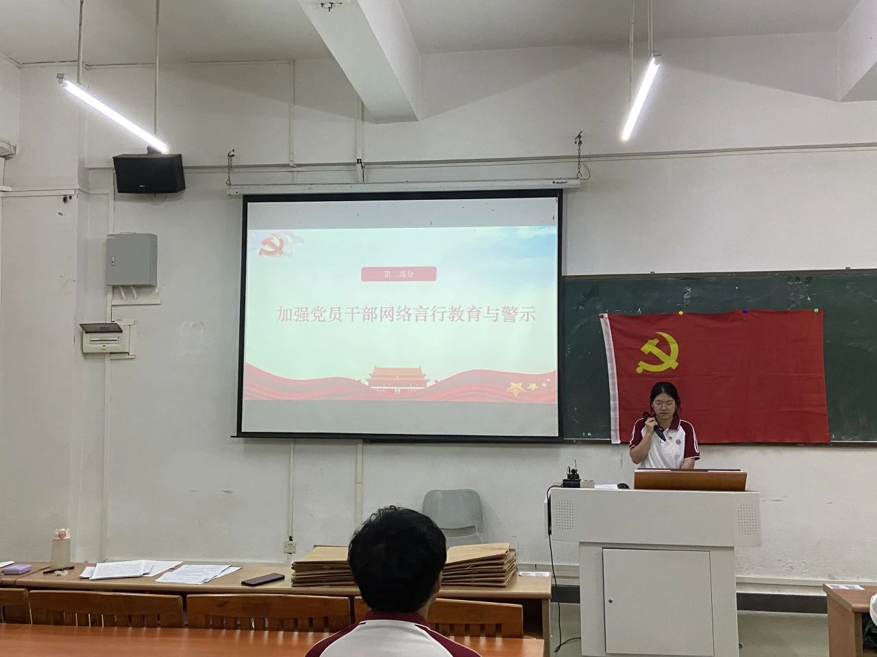 为严以修身正己心,担当使命铸辉煌,广大青年应坚定信念,修身养性,积极担当起新时代的使命,将个人的成长与实现中华民族的伟大复兴紧密相连。人工智能学院学生第五党支部于6月21日12:10在励志楼D101隆重举办了“深刻认识党员网络言行的重要性”为主题的党日活动。出席本次会议的有人工智能学院学生第五党支部学生书记邓琴老师、学生第五党支部各党员。本次会议由支部党员黄庆珊同志主持。