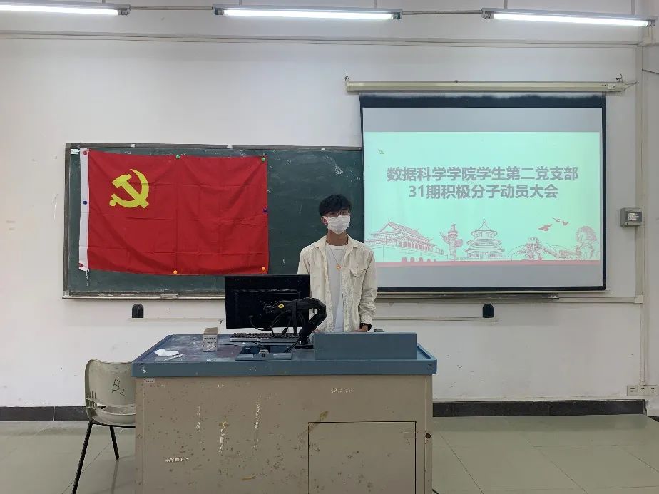 为进一步增强入党积极分子对党课的了解,加强入党积极分子们对党课培训期间的纪律性,提高广大入党积极分子的党性修养,数据科学学院学生第二党支部于2022年3月11日中午12:30在励志楼D202顺利召开了第31期入党积极分子动员大会。出席本次大会的有数据科学学院学生第二党支部支委会成员及第31期入党积极分子。本次大会由李坚豪同志主持。