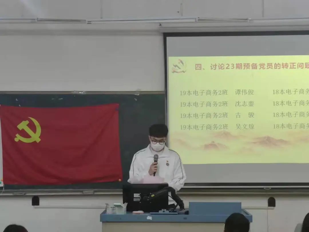 2022年5月7日17:45,数据科学学院学生第五党支部于励志楼D102召开第23期预备党员转正大会。出席本次会议的有数据科学学院学生第五党支部书记吴诗雨老师、支部全体党员。大会由陈炽堃同志主持。