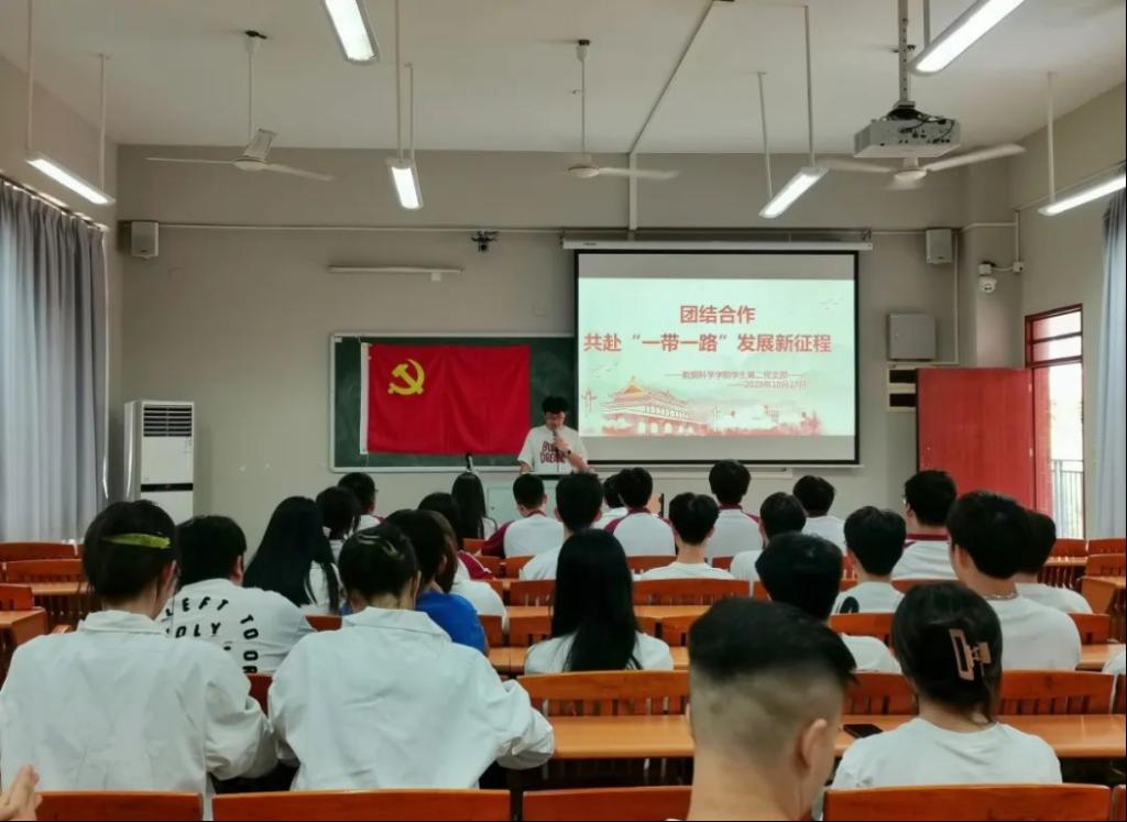 为深入学习贯彻习近平外交思想,引导党支部成员深入学习丝路精神,数据科学学院学生第二党支部于10月27日12:20在启智楼309开展“共赴‘一带一路’发展新征程”党日主题活动。出席本次会议的有数据科学学院学生第二党支部全体在校学生党员,会议由潘浩亮同志主持。