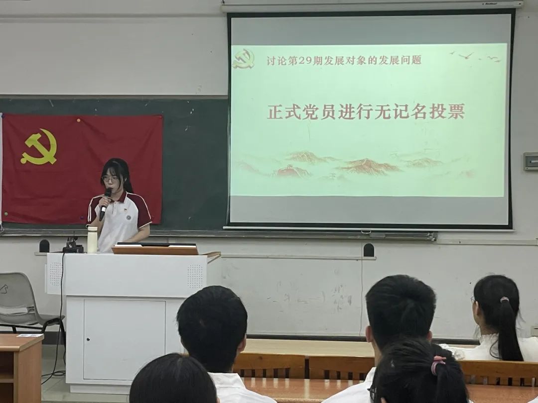 随后,与会的正式党员讨论发展对象的发展问题,拥有表决权的正式党员逐一对十名发展对象进行无记名投票表决。经表决,一致同意接收郭怡静等10名同志为中共预备党员。
