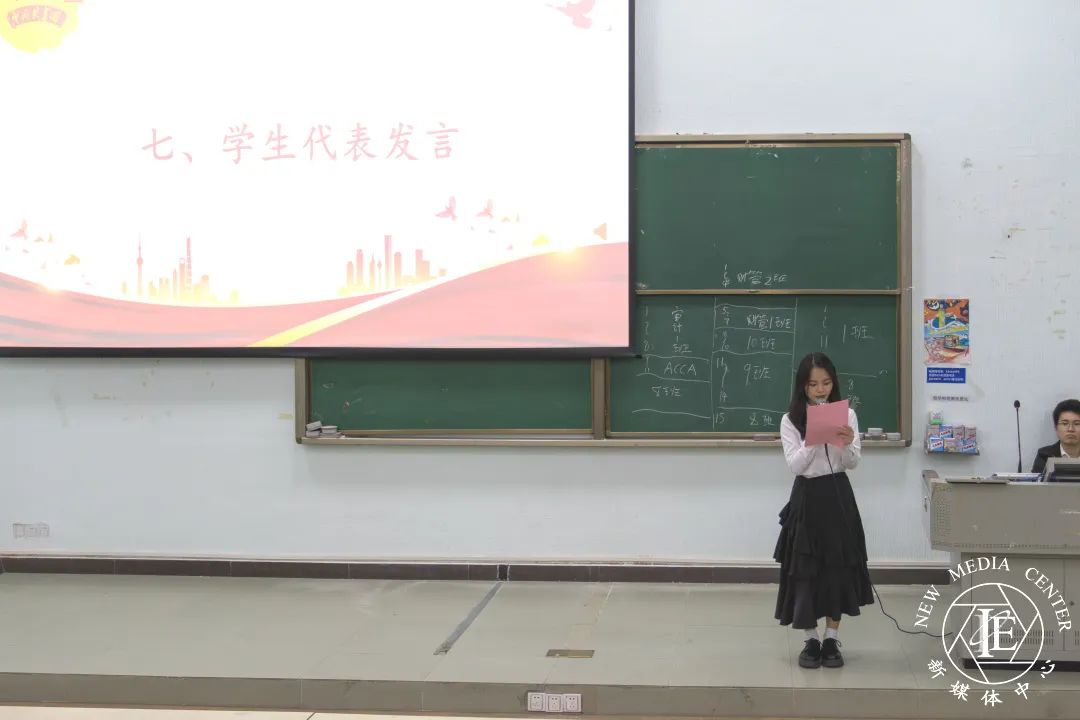 学生会主席团成员代表刘鑫婷师姐提到学生会在过去学年的工作中始终秉持“全心全意为同学服务”的宗旨,以“务实创新,锐意进取”的精神,开展了一系列内容丰富的活动,丰富了同学们的校园生活,同时也提升了同学们的政治理论水平,未来学生会也将不忘初心,牢记使命,继续努力,为同学们提供更优质、高效的服务。