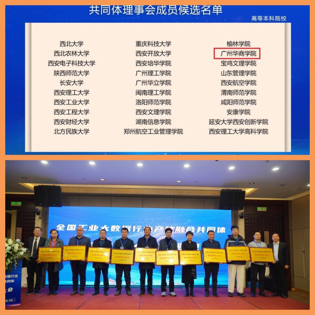共同体成立大会于2023年12月22日在陕西省西安市隆重召开。广州华商学院数据科学学院副院长叶仕通、院长助理杨波代表我校出席了此次盛会。本次盛会共有130余家单位参加,82家企业参与共同体建设单位,我校获选共同体副理事长单位,由杨波院助代表学校接受了授牌。