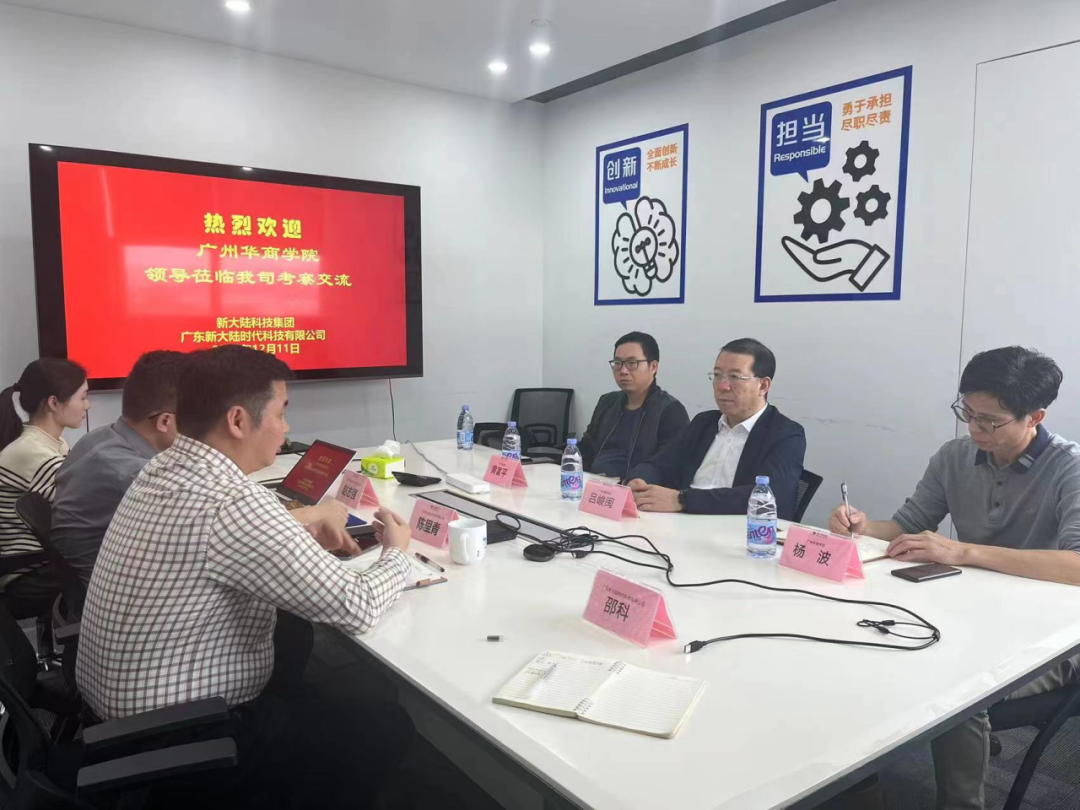 2023年12月11日,广州华商学院副校长带领数据科学学院院长助理杨波、数据科学学院计算机系主任黄富平一行,先后赴广东新大陆时代科技有限公司、新华三集团(H3C)开展调研考察。此次考察旨在加强学校与企业的交流与合作,推动产教深度融合,提高人才培养质量。