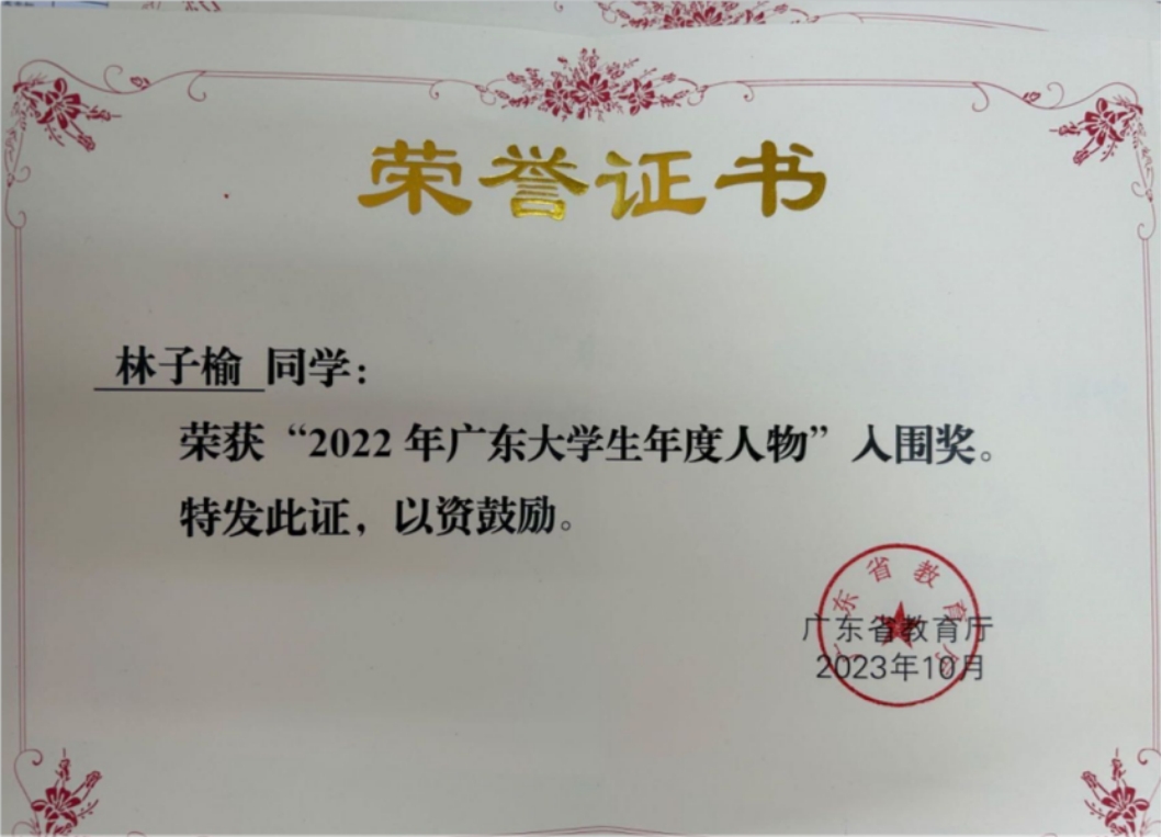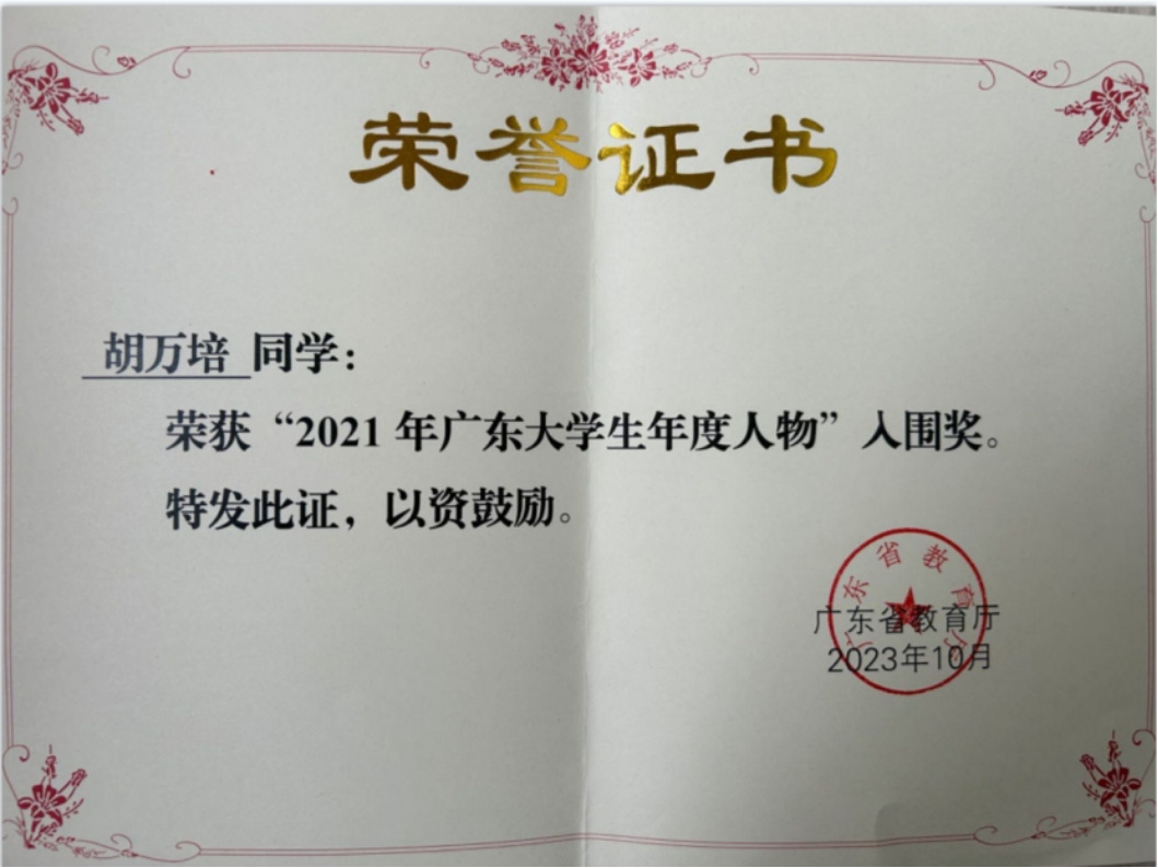 热点新闻 当前位置: 首页 >> 正文 热烈祝贺我院耿艳利老师荣获“广东高校辅导员年度人物”入围奖! 2024-06-28 根据《广东省教育厅关于公布2021年、2022年“广东高校辅导员年度人物”与“广东大学生年度人物”名单的通知》(粤教思函[2023]17号)文件,祝贺我校耿艳利老师荣获“2021年广东高校辅导员年度人物”入围奖;健康医学院胡万培同学荣获“2021年广东大学生年度人物”入围奖;经济贸易学院林子榆同学荣获“2022年广东大学生年度人物”入围奖。 希望我校师生以高校辅导员年度人物和大学生年度人物为榜样,落实立德树人的根本任务,为加快建设教育强国矢志奋斗,争做有理想、敢担当、能吃苦、肯奋斗的时代新人。 上一条:人工智能学院青年教师李丹丹在《Journal of Computational and Applied Mathematics》期刊发表论文 下一条:共赴湾商大会 勇攀科创高峰|我院“挑战杯”省赛团队参加第二届湾商大会·教育科技论坛 【关闭】