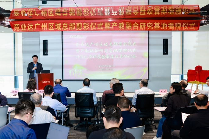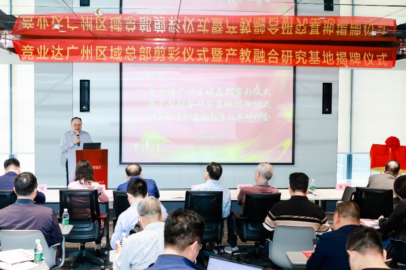 广东省计算机学会、广东省高等教学学会、广东省各高校计算机相关专业学院、职校计算机相关专业学院、计算机相关专业合作企业代表出席盛会,此次会议还有另外一个主题是北京竞亚达数码科技股份有限公司产教融合研究基地揭牌仪式。此次会议由北京竞亚达数码科技股份有限公司实验教学与产教融合BU副总裁李朝辉、北京竞亚达数码科技股份有限公司副总裁李文波主持。