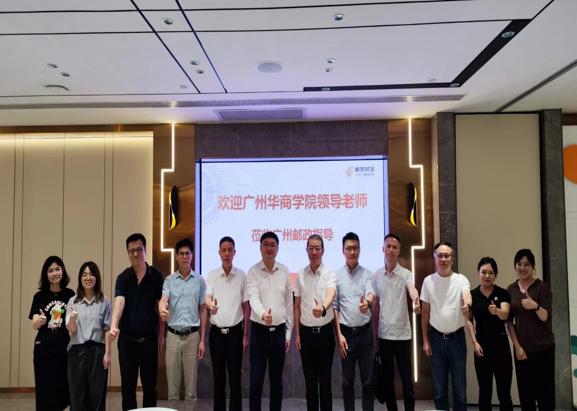 广州华商学院副校长吕峻闽教授、广州华商学院人工智能学院院长戴经国教授、人工智能学院副院长杨波副教授、人工智能学院产教专员徐胜超副教授、广州华商学院实验教学与网络技术中心副主任黎祥远、广州华商学院会计学院副院长刘善球、会计学院数智会计与商务服务产业学院办公室主任张馨月一起参加了此次校企合作研讨交流活动。此次活动得到中国邮政广州市分公司党委书院兼总经理朱平、副总经理兼大客户经理辛晓丹、金融部经理蔺致元及广州华商学院2017届毕业生丁轶凡校友等企业人员的大力支持与热情组织接待。