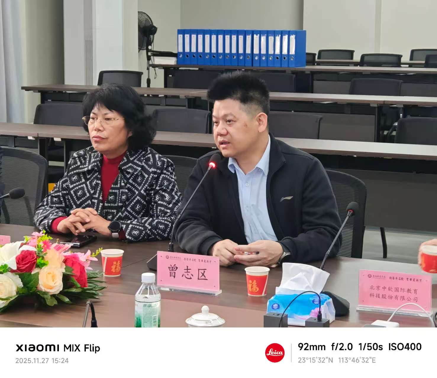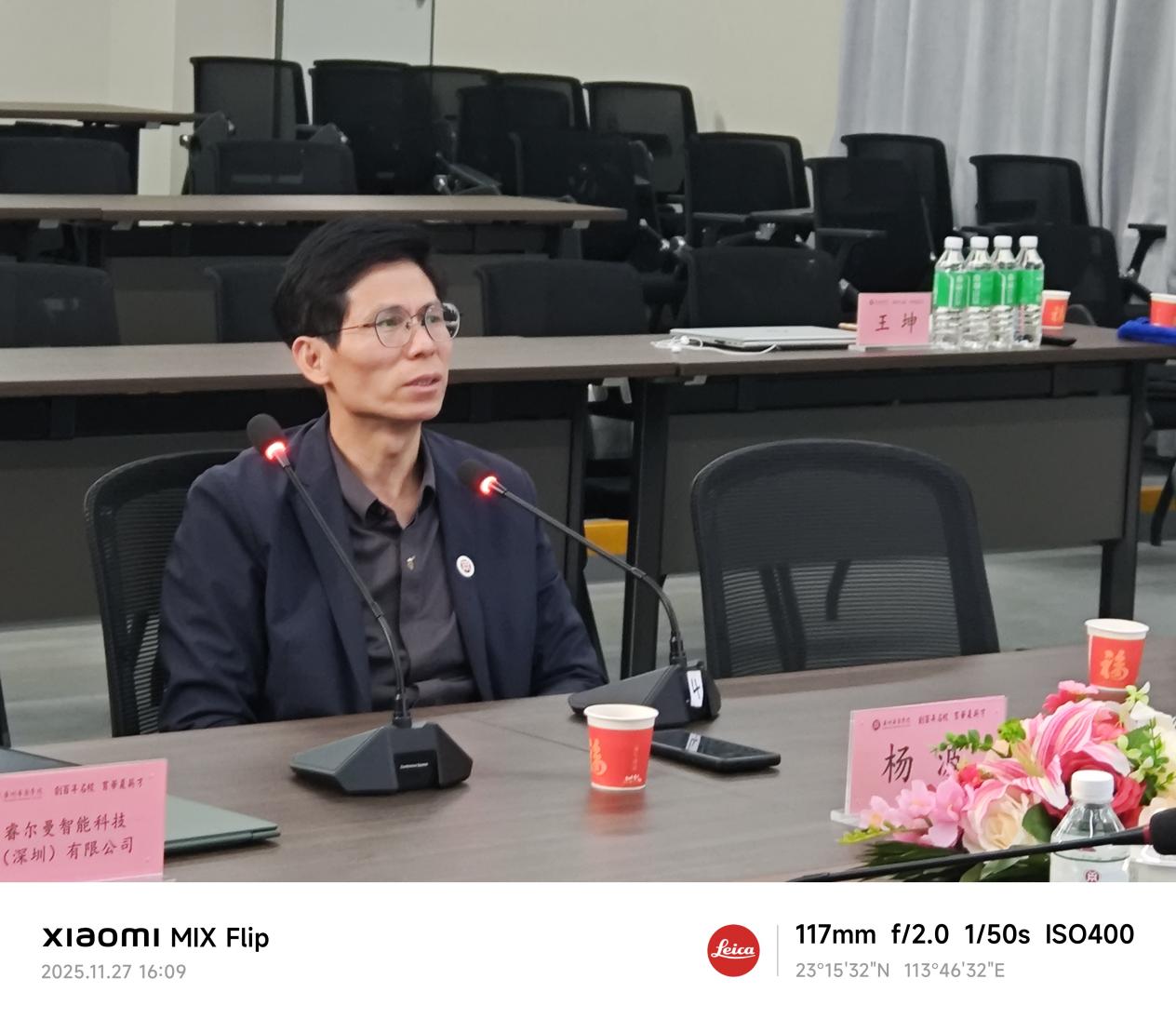 2025年11月27日下午,广东图灵智新技术有限公司(以下简称“图灵智新”)、北京中软国际信息技术有限公司(以下简称“中软”)、睿尔曼智能科技(深圳)有限公司(以下简称“睿尔曼”)与广州华商学院人工智能学院围绕“智能科技产业区”建设的产教融合研讨会顺利召开。会议由杨波书记主持,吸引了图灵智新代表林绵锋先生、中软广东区域代表吴楚杰先生、解决方案工程师黎煌剑先生、睿尔曼副总经理代表虎兴刚先生、产教融合办公室唐明琴主任、实验教学与网络技术管理中心曾志区主任、人工智能学院党委书记兼副院长杨波、产教融合办肖明老师、产教秘书王坤、会议共同探讨如何通过校企合作,打造集“产、教、研、创、转”于一体的智能科技示范中心,推动真实项目落地与人才培养的深度融合。